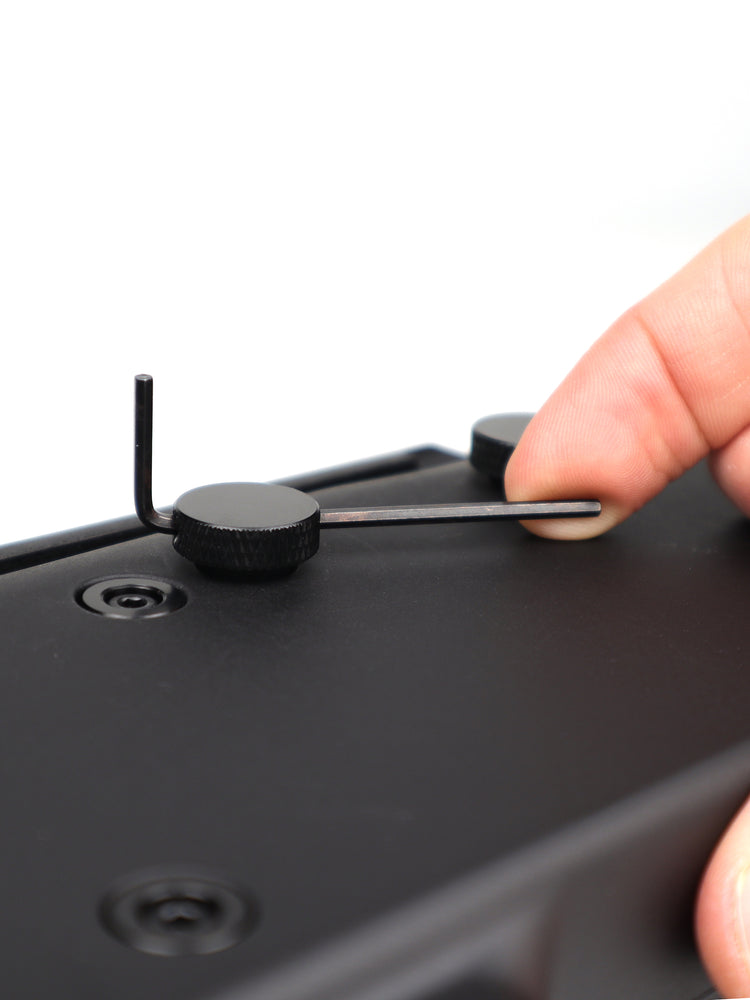These screws are anodized semi-matt black and have a nice diamond knurling on the side. Additionally they have a hole for the Allen key (the same one used for TDC adjusting) so you can easily tighten or loosen the screws beyond what you can with your fingers!