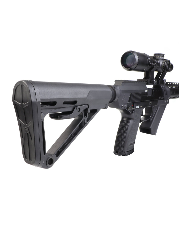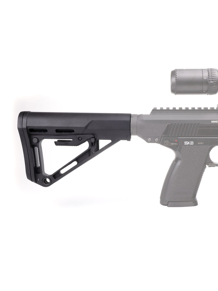 After testing dozens of different M4 stocks, RS3 stock by APS stood out as a clear winner for price / performance. It's lighter than most stocks on the market and weighs only 170g, made out of high quality polymer and comes in at a very affordable price point.