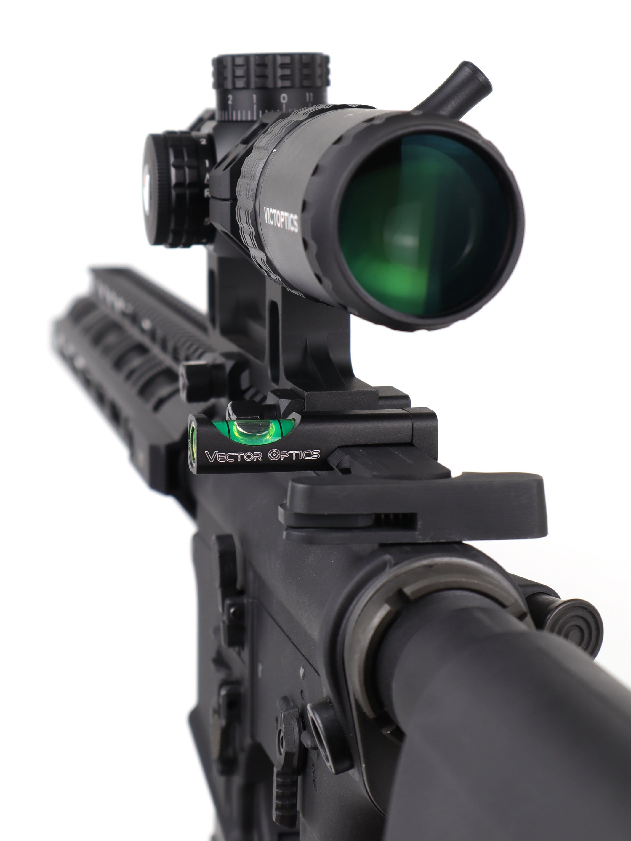 This Offset Bubble Level Indicator by Vector Optics helps you keep your airsoft gun level and avoid curving BB's.