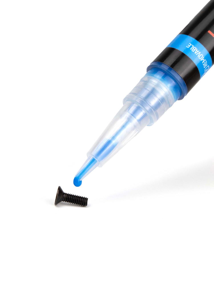 While this is regular thread glue, it comes in a unique container which allows to dispense perfect amount of thread glue every time with a clicking pen-like mechanism.
