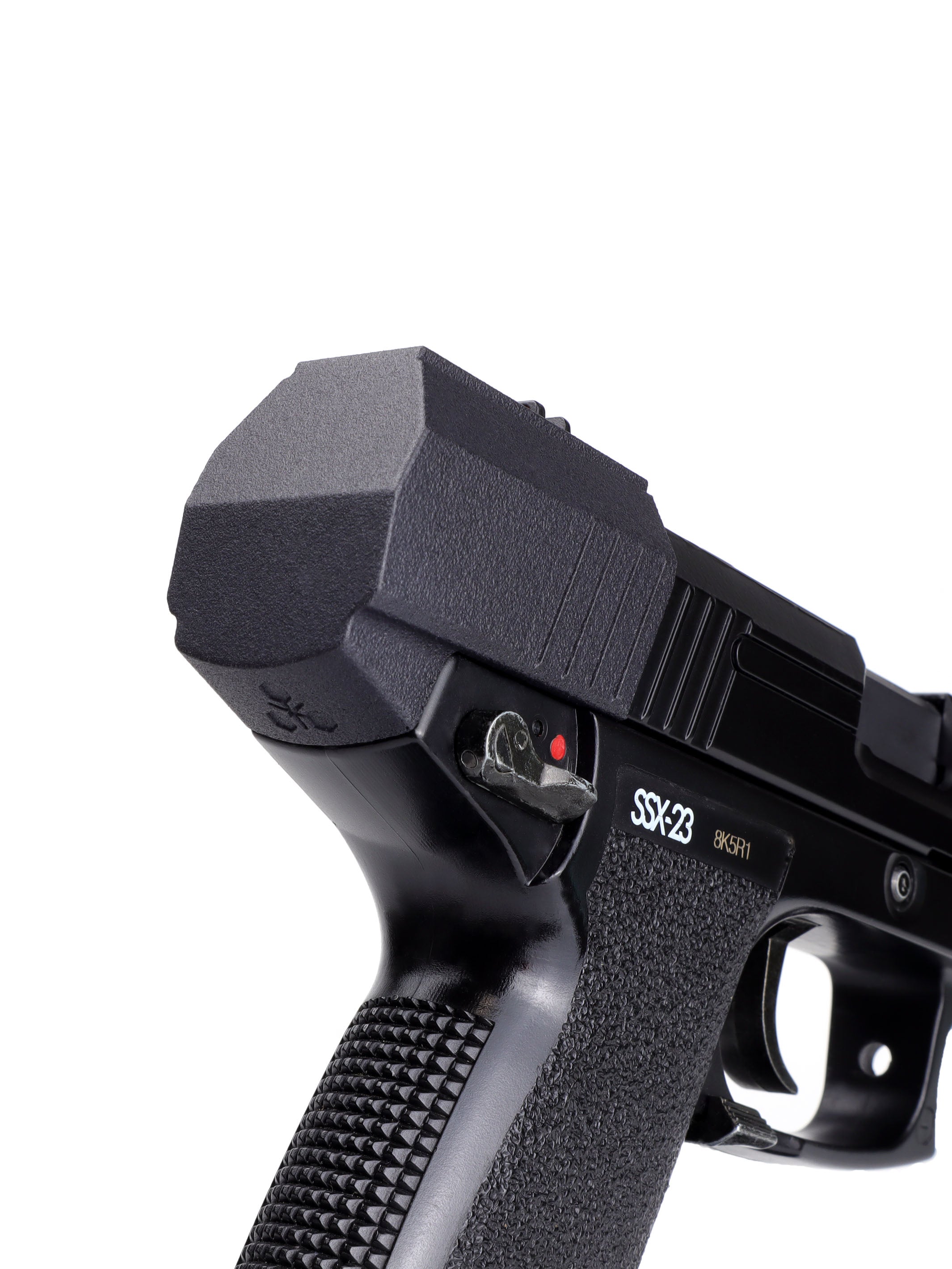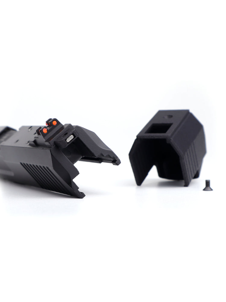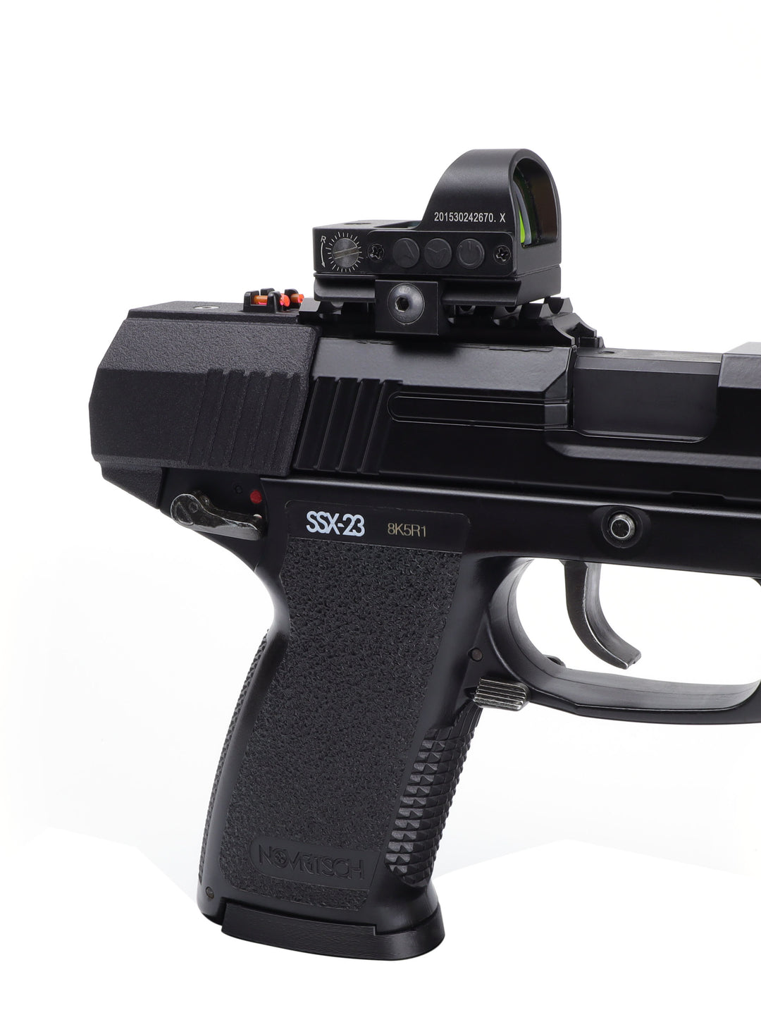 With some small modifications, the hammer cover is also compatible with the SSX23 Picatinny Slide Rail and can be used with the red dot. There are pre-made cutting path made on the front of the cover that needs to be cut away to make space for the rail.