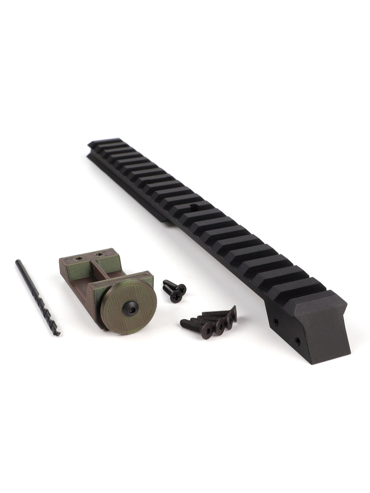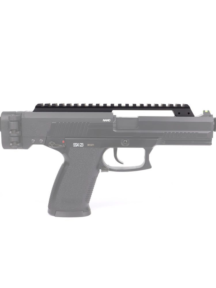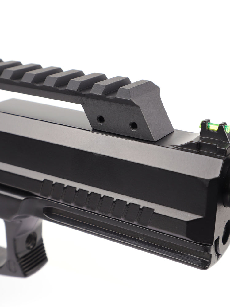 This is the full length picatinny top rail that enables use of any scope. In front it has holes for Slide Stabilizers that lock the slide and frame together to avoid any side to side movement / wobble.