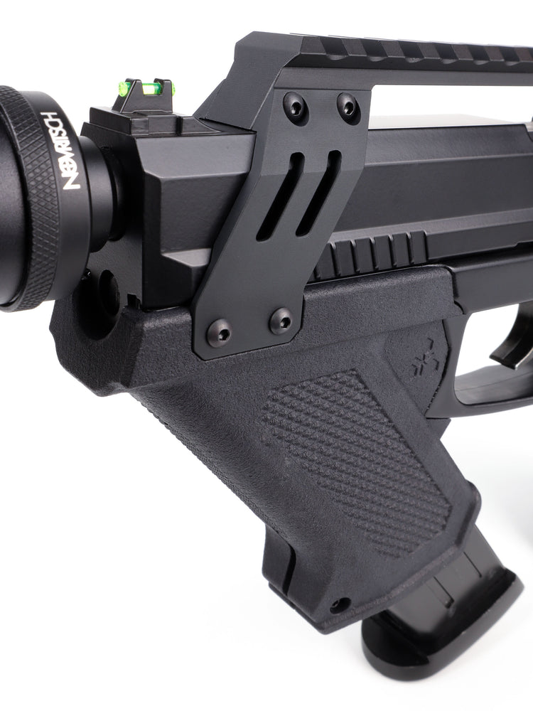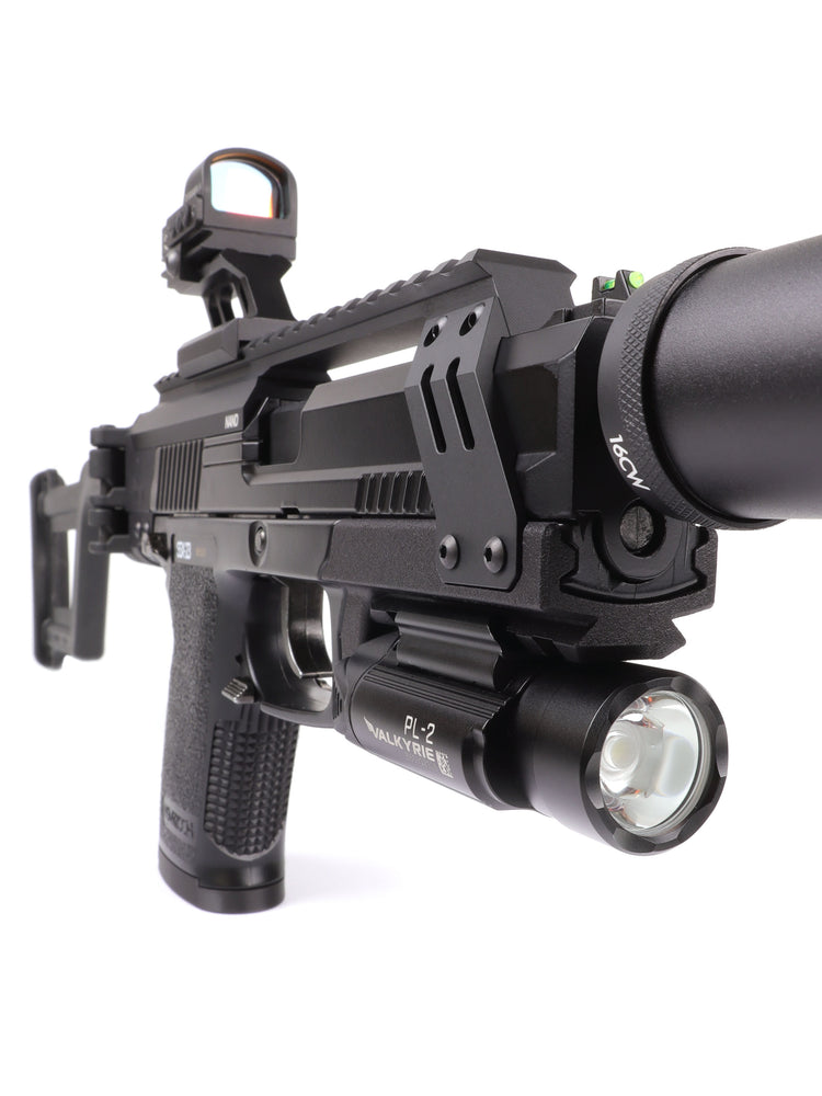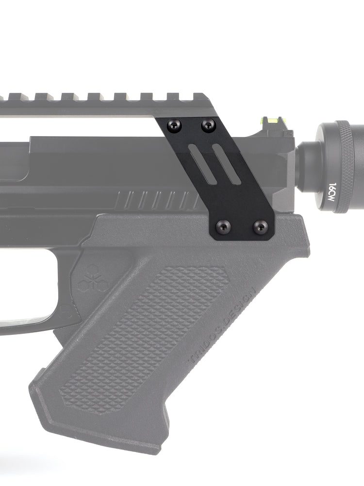 By default the SSX23 / MK23 has quite some side to side wobble between the slide and the frame. These stabilizers make use of the Long Picatinny Rail and Frame Rail (or Angled Spare Mag Holder) to lock the slide and the frame rigidly together.